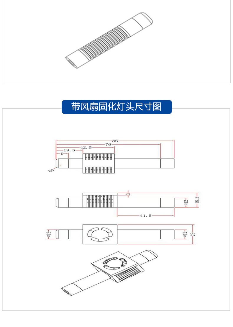 點光源UVLED照射燈頭(帶風扇)